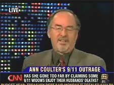 Horowitz was on Larry King to defend Ann Coulter's vicious attack of the 9/11 widows in her new book. He wasn't actually booted off the show, but when he defended Coulter by saying that she didn't write the book for money...well...I hear she's such a giving person. It happens at about the three minute mark.