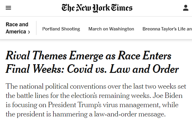 Gallup routinely asks an open-ended question about what’s the most important problem facing the country today. In August, 35 percent said something about COVID/disease. 12 percent economy. 10 percent race relations. Only 4 percent crime. https://t.co/mHxoAWM0Fc