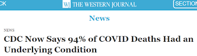 But it's also still out there in the mainstream press. Here's a story from WFLA in Tampa: "New CDC Report Shows 94% of COVID-19 Deaths in US Had Contributing Conditions." Here's Fox 5 in San Diego: same headline. The story is up at this local TV channel's news site, and this one. It's presented as new information, and the context is ignored: