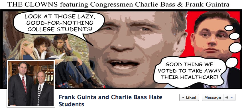 On Friday we explained a Facebook ad campaign Blue America embarked on to remind 18-26 year olds in 8 congressional districts that their congressmembers voted to kick them off their parents' health insurance plan-- and without even caring enough to come up with an alternative for their healthcare. As of this morning there had been over 3 million impressions in Wisconsin, New Hampshire, California, North Carolina, Florida and New York, where our targets are, respectively, Paul Ryan, Frank Guinta & Charlie Bass, Buck McKeon, Patrick McHenry, John Mica & Sandy Adams, and Tom Reed-- 8 dirtbags. Have you been to our DefeatDirtBags page?